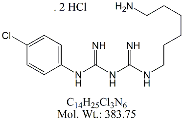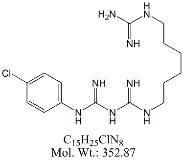 | Chlorhexidine Dihydrochloride CXH00-100 1,1′-(Hexane-1,6-diyl)bis[5-(4-chlorophenyl)biguanide] dihydrochloride ; CAS # 3697-42-5 ; 55-56-1 (free base) ; MORE INFO >> |