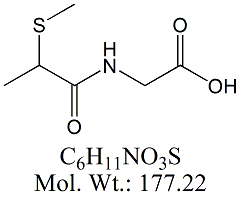 | Tiopronin S-Methyl Impurity TPN53-100 N-[2-(Methylthio)-1-oxopropyl]glycine ; CAS # 87254-91-9 ; MORE INFO >> |