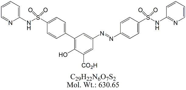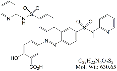 | Sulfasalazine SSZ00-100 2-Hydroxy-5-[2-[4-(pyridin-2-ylsulfamoyl)phenyl]diazenyl]benzoic acid ; CAS # 599-79-1 ; MORE INFO >> |
