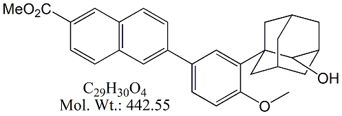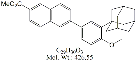 | Adapalene Methyl Ester ADP51-100 Methyl 6-[3-(1-Adamantyl)-4-methoxyphenyl]-2-naphthalenecarboxylate ; CAS # 106685-41-0 ; MORE INFO >> |