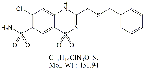 | Benzthiazide BZT00-100 6-Chloro-3-[[(phenylmethyl)thio]methyl]-2H-1,2,4-benzothiadiazine-7-sulfonamide 1,1-Dioxide ; CAS # 91-33-8 ; MORE INFO >> |