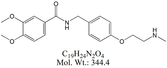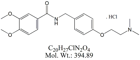 | Itopride HCl ITD00H-100 N-[[4-[2-(Dimethylamino)ethoxy]phenyl]methyl]-3,4-dimethoxy benzamide hydrochloride ; CAS # 122892-31-3 ; MORE INFO >> |