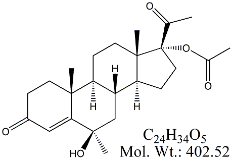 | Medroxyprogesterone Acetate EP Impurity A MPG01-100 6-Hydroxy Medroxyprogesterone Acetate ; 6α-Hydroxy Medroxy Progesterone 17-Acetate ; 6α-Hydroxy-6-methyl-3,20-dioxopregn-4-en-17-yl acetate ; (6α)-17-(Acetyloxy)-6-hydroxy-6-methylpregn-4-ene-3,20-dione; 6α,17-Dihydroxy-6-methylpregn-4 MORE INFO >> |