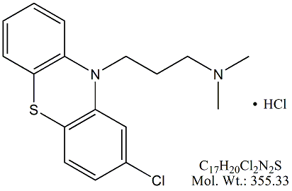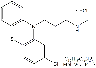 | Chlorpromazine HCl CPZ00H-100 3-(2-Chloro-10H-phenothiazin-10-yl)-N,N-dimethylpropan1-amine hydrochloride ; CAS # 69-09-0 ; MORE INFO >> |