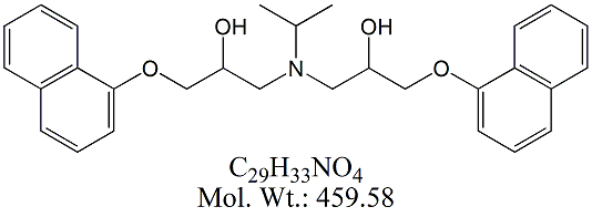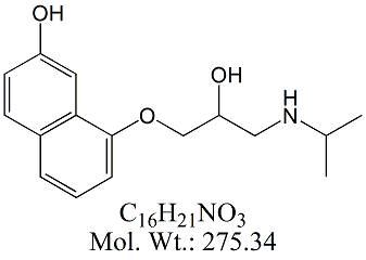 | Propranolol HCl PPN00H-100 (2RS)-1-[(1-Methylethyl)amino]-3-(naphthalen-1-yloxy)propan-2-ol hydrochloride ; CAS # 318-98-9 ; MORE INFO >> |