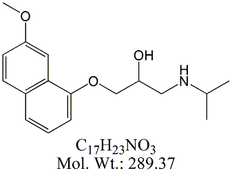 | Propranolol 7-Methoxy Impurity PPN67-100 1-[(7-Methoxy-1-naphthalenyl)oxy]-3-[(1-methylethyl)amino]-2-propanol ; CAS # 76275-53-1 ; MORE INFO >> |
