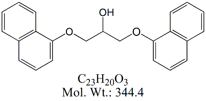 | Propranolol EP Impurity C PPN03-100 1,3-bis(Naphthalen-1-yloxy)propan-2-ol ; 1,3-Bis(1-Naphthoxy)-2-propanol; CAS # 17216-10-3 ; MORE INFO >> |