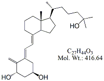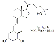 | Calcitriol CCT00-100 (1R,3S,5Z)-4-Methylene-5-[(2E)-2-[(1R,3aS,7aS)-octahydro-1-[(1R)-5-hydroxy-1,5-dimethylhexyl]-7a-methyl-4H-inden-4-ylidene]ethylidene]-1,3-cyclohexanediol ; CAS # 32222-06-3 ; MORE INFO >> |