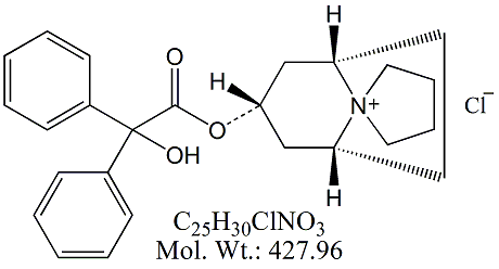 | Trospium Chloride TSP00-100 (1R,3r,5S)-3-[(Hydroxydiphenylacetyl)oxy]spiro[8azoniabicyclo[3.2.1]octane-8,1′-pyrrolidinium]chloride ; CAS # 10405-02-4 ; MORE INFO >> |