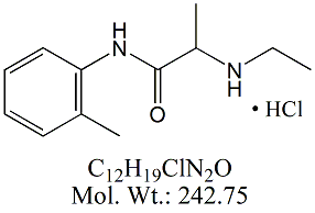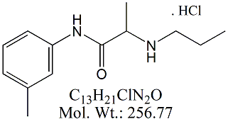 | Prilocaine HCl PLC00H-100 (RS)-N-(2-Methylphenyl)-2-(propylamino)propanamide hydrochloride ; CAS # 721-50-6 (Base) ; 1786-81-8 (HCl) ; MORE INFO >> |