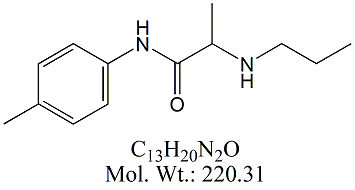 | Prilocaine EP Impurity D PLC04H-100 (RS)-N-(3-Methylphenyl)-2-(propylamino)propanamide HCl ; CAS # 878791-35-6 ; MORE INFO >> |