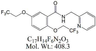 | Flecainide EP Impurity E FCN05-100 N-(Pyridin-2-ylmethyl)-2,5-bis(2,2,2-trifluoroethoxy)benzamide ; CAS # 57415-36-8 ; MORE INFO >> |