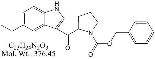 | Eletriptan Impurity E ETT65-100 Benzyl 2-(5-Ethyl-1H-indole-3-carbonyl)pyrrolidine-1-carboxylate ; MORE INFO >> |