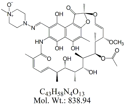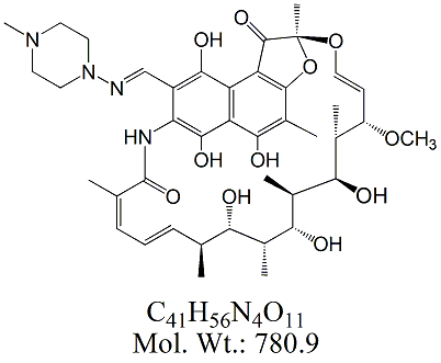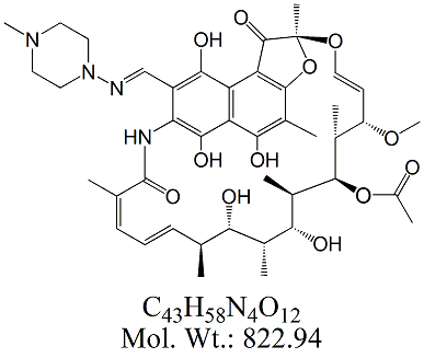 | Rifampicin RFP00-100 (2S,12Z,14E,16S,17S,18R,19R,20R,21S,22R,23S,24E)5,6,9,17,19-Pentahydroxy-23-methoxy-2,4,12,16,18,20,22-heptamethyl-8-[[(4-methylpiperazin-1-yl)imino]methyl]-1,11-dioxo-1,2-dihydro-2,7-(epoxypentadeca[1,11,13]trienimino)naphto[2,1-b]furan-21-yl acetate ; C MORE INFO >> |