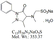| Metamizole Sodium Monohydrate MMZ00N-100 Sodium [(1,5-Dimethyl-3-oxo-2-phenyl-2,3-dihydro-1H-pyrazol-4-yl)(methyl)amino]methanesulfonate monohydrate ; CAS # 5907-38-0 ; MORE INFO >> |