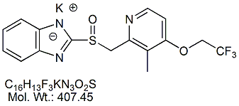 | Lansoprazole Potassium LSP00K-100 2-[[[3-Methyl-4-(2,2,2-trifluoroethoxy)-2-pyridinyl]methyl]sulfinyl]-1H-benz imidazole potassium salt ; MORE INFO >> |