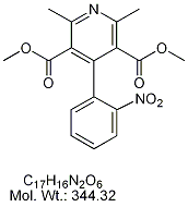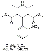 | Nifedipine NFD00-100 Dimethyl 2,6-dimethyl-4-(2-nitrophenyl)-1,4-dihydropyridine-3,5-dicarboxylate ; CAS # 21829-25-4 ; MORE INFO >> |