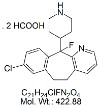 | Desloratadine EP Impurity A DLR01F-100 11-Fluoro Dihydro Desloratadine Diformate Salt ; CAS # 298220-99-2 (free base) ; MORE INFO >> |