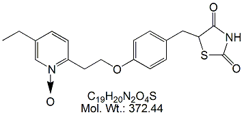 | Pioglitazone N-Oxide PGT31-100 5-[[4-[2-(5-Ethyl-2-pyridinyl]ethoxy]phenyl]methyl]-2,4-thiazolidinedione N-oxide ; CAS # 145350-09-0 ; MORE INFO >> |