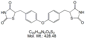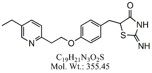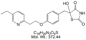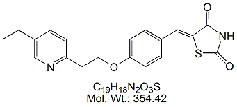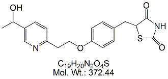 | Pioglitazone HCl PGT00H-100 (RS)-5-(4-[2-(5-Ethylpyridin-2-yl)ethoxy]benzyl)thiazolidine-2,4-dione hydrochloride ; CAS # 112529-15-4 ; MORE INFO >> |