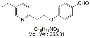 | Pioglitazone Aldehyde Impurity PGT24-100 Pioglitazone Benzaldehyde Impurity ; 4-[2-(5-Ethyl-2-pyridinyl)ethoxy] benzaldehyde ; CAS # 114393-97-4 ; MORE INFO >> |