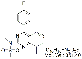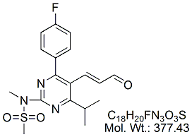 | Rosuvastatin Formyl Impurity RSV71-100 N-(4-(4-Fluorophenyl)-5-formyl-6- isopropylpyrimidin-2-yl)-N-methylmethanesulfonamide ; CAS # 147118-37-4 ; MORE INFO >> |
