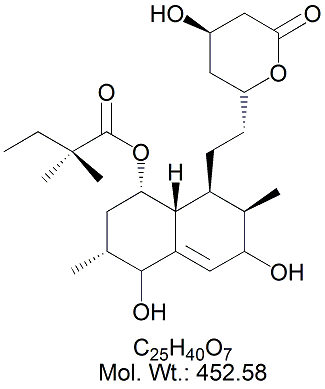 | Simvastatin 4α,5-Dihydro Impurity; 100 MG SVS45-100 4α,5-Dihydro Simvastatin ; Simvastatin Impurity K ; (1S,3S,4aR,7S,8S,8aS)-8-(2-((2R,4R)-4-Hydroxy-6-oxotetrahydro-2H-pyran-2-yl)ethyl)-3,7-dimethyl-1,2,3,4,4a,7,8,8a-octahydronaphthalen-1-yl 2,2-dimethylbutanoate ; MORE INFO >> |