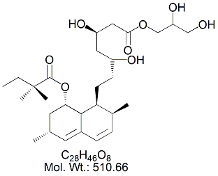 | Simvastatin Acid Glycerol Ester SVS52-100 Simvastatin Hydroxy Acid Glycerol Ester ; (3R,5R)-2,3-Dihydroxypropyl 7-((1S,2S,6R,8S)-8-(2,2-dimethylbutanoyloxy)-2,6-dimethyl-1,2,6,7,8,8a-hexahydronaphthalen-1-yl)-3,5-dihydroxyheptanoate ; MORE INFO >> |