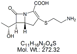 | Imipenem EP Impurity A IMP01-100 Thienamycin ; (5R,6S)-3-[(2-Aminoethyl)sulfanyl]-6-[(R)-1-hydroxyethyl]-7-oxo-1-azabicyclo[3.2.0] hept-2-ene-2-carboxylic acid ; CAS # 59995-64-1 ; MORE INFO >> |