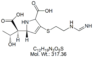 | Imipenem Monohydrate IMP00-100 (5R,6S)-3-[[2-(Formimidoylamino)ethyl]thio]-6-[(R)-1- hydroxyethyl]-7-oxo-1-azabicyclo[3.2.0]hept-2-ene-2-carboxylic acid monohydrate ; CAS # 74431-23-5 ; MORE INFO >> |